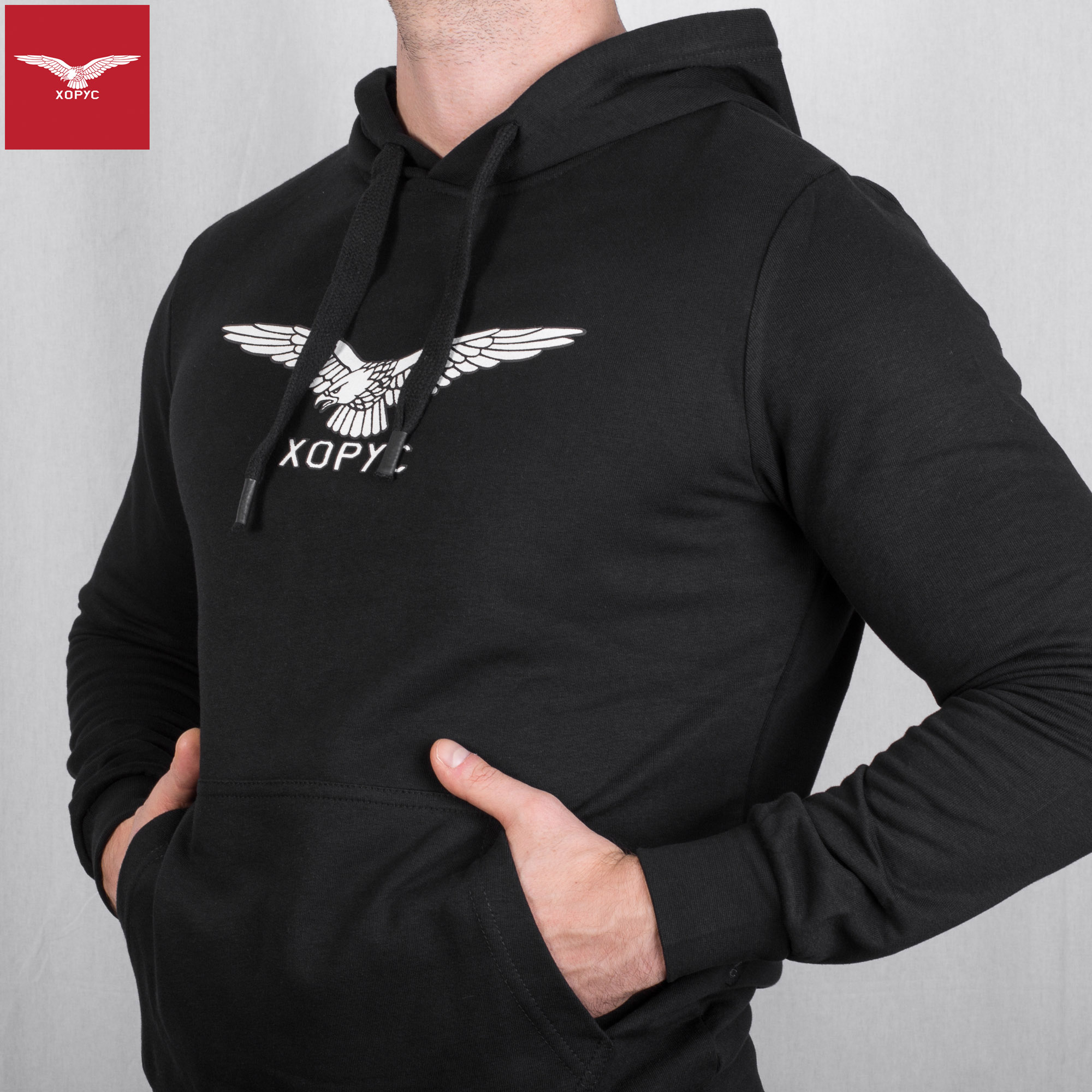 The D-5 Logo black hoodie is perfect for everyday outdoor activities. Top materials and modern, classic cut will give you sense of comfort, even during prolonged wearing, regardless of the activities. The D-5 Logo black hoodie has a hoodie and two large pockets at the front.