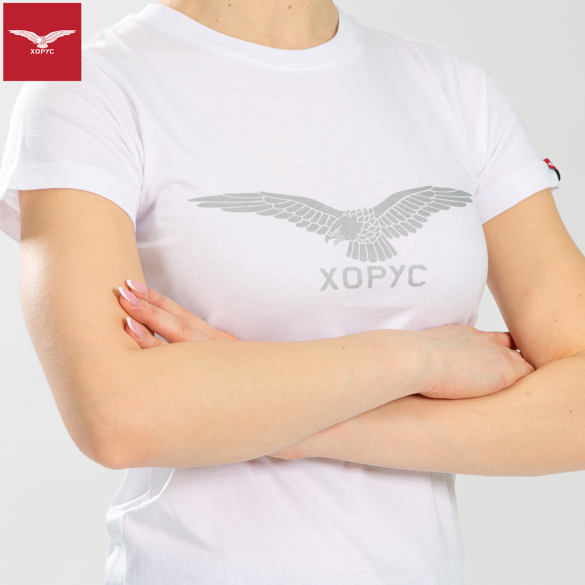 Ženska majica Horus - bela, srebrni logo